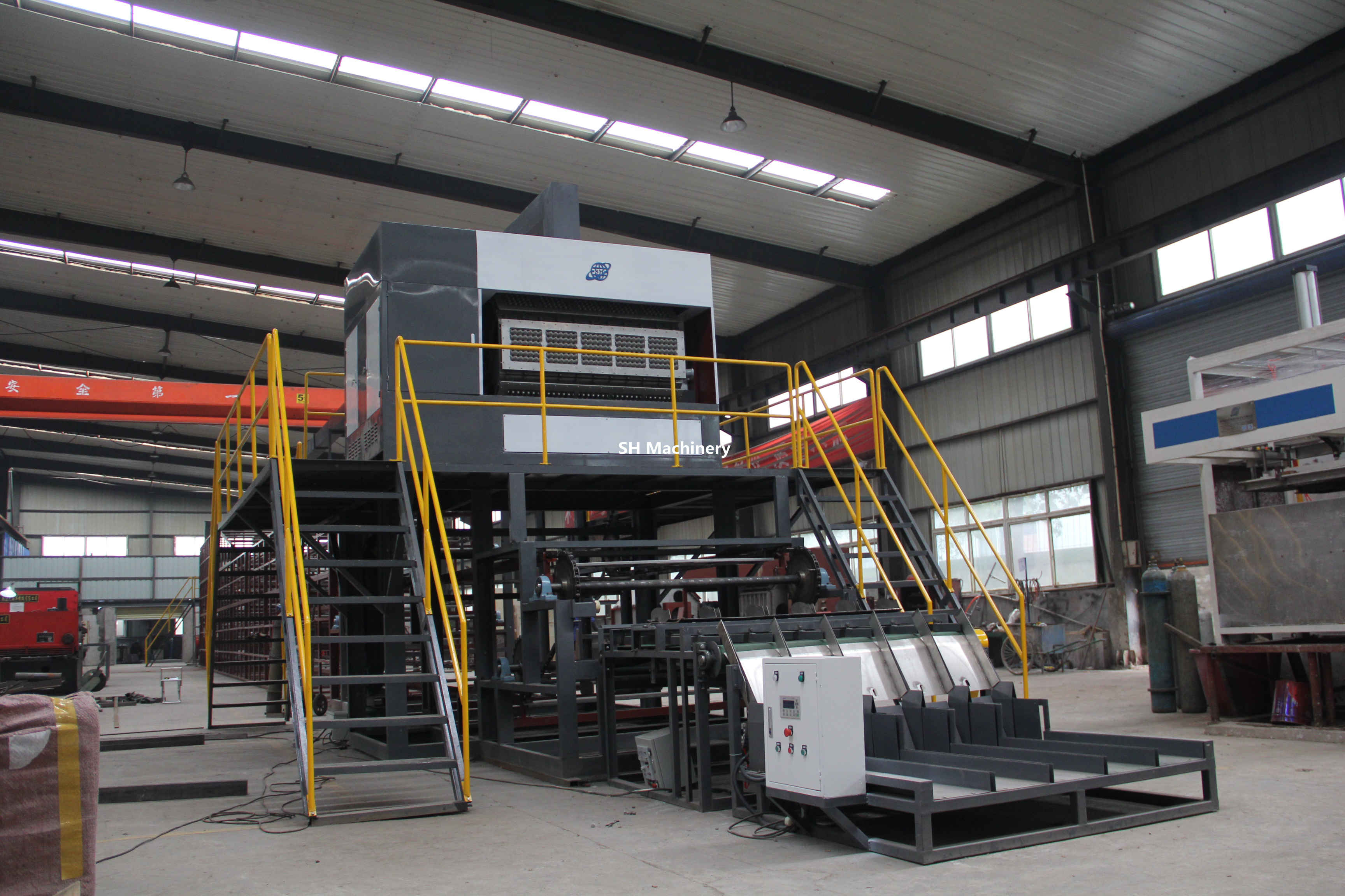 加納6000片每小時蛋托生產線多層金屬烘干線設備全貌