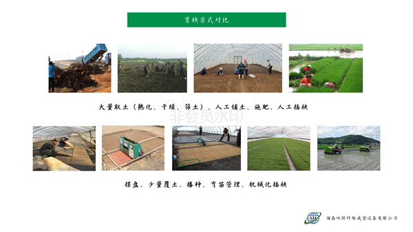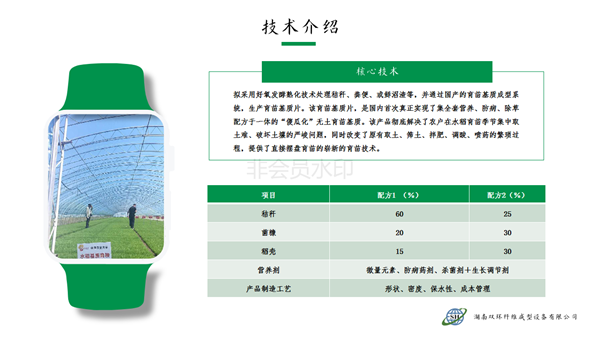 本產品針對水稻旱育苗大量挖取耕層土,耕層破壞嚴峻的現實,利用秸稈、蘑菇菌糠、稻殼、沼渣等農林廢棄物經過工廠化快速熟化,賦予全套的營養、防病、除草配方,制造成新型的嶄新的“無土育苗基質”。